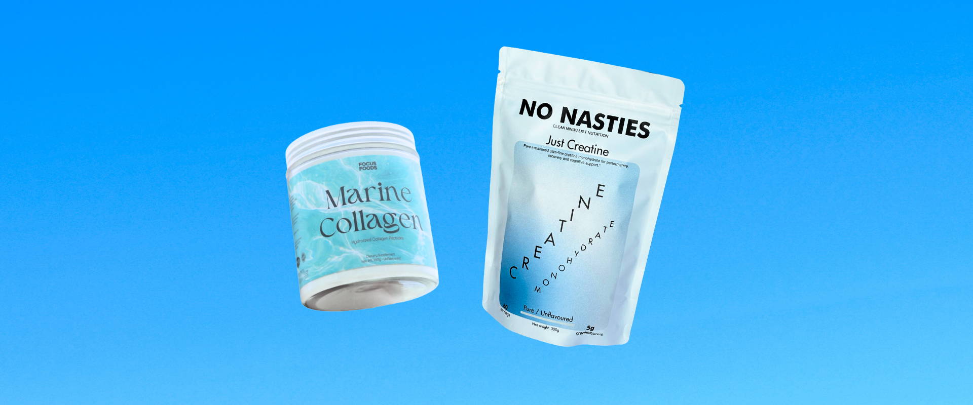 Both products can be taken any time of the day. However, many find it beneficial to take them in the morning to help boost energy (from Creatine) and boost protein (from Marine Collagen). Both are also unflavoured so you can add them together to water or any of your favourite beverages.